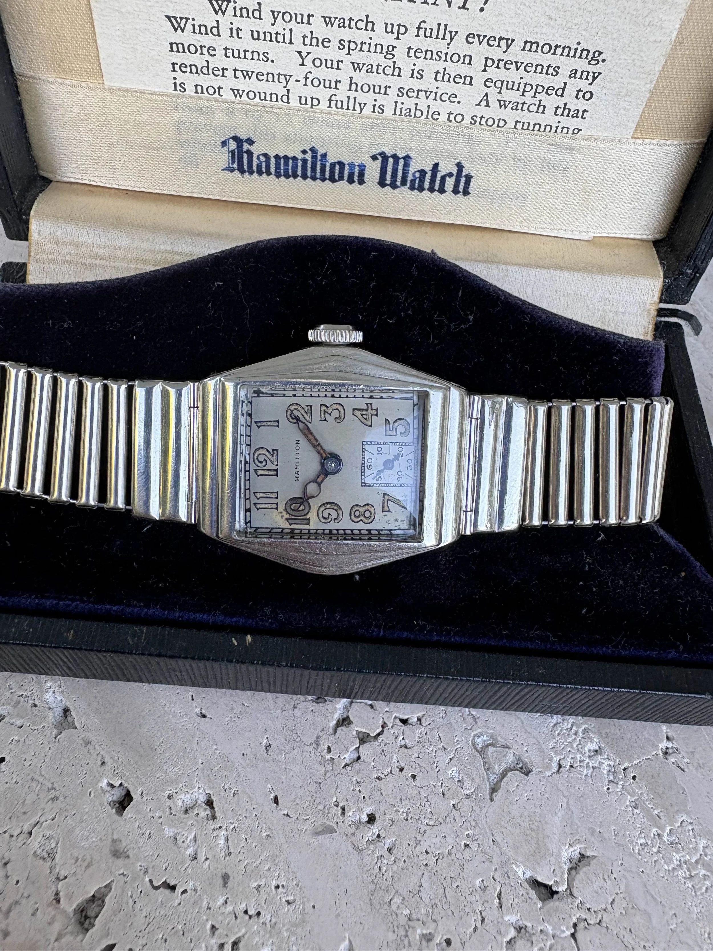 Contour, Yellow Gold Fill, AGN Dial, Drivers Watch, Hamilton Signed Band & Buckle $695.00 Cameron, 14k Solid Gold, Applied Gold Numeral Dial $995.00 Hastings, 14k Yellow Gold Fill, Luminous Dial, Hamilton Signed Band & Period Hadley Buckle $545.00 Ladies watch, 10k Yellow Gold Fill, AGN Dial, Hamilton Box $95.00 Stanley, Yellow Gold Fill, Luminous Dial, Hamilton Signed Band and Buckle $1,195.00 Webster, Yellow Gold Fill, Luminous Dial, Hamilton Band and Buckle $575.00 Livingstone, Yellow Gold Fill, Marker Dial, Hamilton Band and Buckle $1,495.00 Square "B" Plain, Green Gold Fill, Luminous Dial, Hamilton Signed Band $565.00 Whitman, Yellow Gold Fill, Applied Gold Numeral, Rare Wartime Shortage Presentation Box, Hamilton Band $725.00 Clark, Yellow Gold Fill, Gold Numeral Dial, Original Box, Band and Buckle $695.00 Ross, Coral (Rose) Gold Fill, AGN Dial, Original Special Box $645.00 Carslile, Superb Condition, Yellow Gold Fill, AGN, Hamilton Box, Band and Buckle $745.00 Hayden, White Gold Filled, Original Hamilton Band and White Buckle, Original Box and Hangtag $1,395.00 Myron, Yellow Gold Filled, Extremely Rare NOS Custom Dial, Hamilton Signed Band and Buckle $1,195.00 Cabot, Yellow Gold Filled, Enamel Dial, Hamilton Signed Band $395.00 Boone, Yellow Gold Filled, Applied Gold Numeral Dial, Hamilton Signed Band and Buckle $595.00 Square Engraved, Green Gold Filled, Applied Numeral Dial, Hamilton Signed Band and Buckle $695.00 Custer, 14k Solid Yellow Gold, Hamilton Signed Band $995.00 Sold out Oval Engraved, 14k Green Gold, Black figure dial, Hamilton Signed Band and Buckle $5,995.00 Barrel Plain, Black Figure Dial, White Gold Fill, Hamilton Signed Band $495.00 Greenwich, YGF, AGN Dial, Hamilton Signed Band $395.00 "Special Model A" 14k Solid Gold, C. 1942, Original Band and 14k Buckle $1,795.00 Clinton, Original integrated bracelet, WGF, Original box $1,695.00 Raleigh C. 1929, WGF Engraved, Original inner and outer boxes, US Navy Provenance $1,195.00 Stanley, 401 Movement, WGF Case, AGN, Hamilton signed band $1,295.00 Dixon, WGF, AGN Hamilton signed band $495.00 Stanley, 401 Movement YGF, Hamilton Band and Buckle $1,095.00 Hamilton Cushion 14k Solid Green Gold; Special Production, Hamilton Signed Band $1,145.00 Tonneau WGF, Original box w/ Matching Paperwork, Hamilton band $995.00 Drake WGF Enamel Dial, Hamilton band, US Navy Provenance!! $895.00 Turner, WGF C. 1935, 1 of 420 w/ WGF Hamilton Buckle $795.00 Sold out Raleigh, GGF, Special bezel engraving style + Hamilton Band + Original Box, C. 1930 $795.00 Merritt, YGF, Original box + Band & Buckle, C. 1937-1939 $535.00 Bowman, 14k YGF, Original band + buckle, C. 1941 Sale Price: $665.00 Original Price: $765.00 Sale Cushion Engraved, White Gold Filled, Original box with matching papers + Hamilton signed strap, C. 1929 Sale Price: $675.00 Original Price: $925.00 Sale Clark 10k YGF, Original bracelet, C. 1955 $795.00 Hastings, White Gold Fill, Raised Gold Figure Dial, C. 1928-1933 $345.00 Putnam, WGF Stepped Case, Luminous Dial & Hands $495.00 Sold out Oval plain, GGF (Green gold fill), Metallic finish dial with original box C. 1928 $1,875.00 Sold out Greenwich, Yellow gold fill w/ hamilton band, C. 1931-1934 $495.00 Sold out